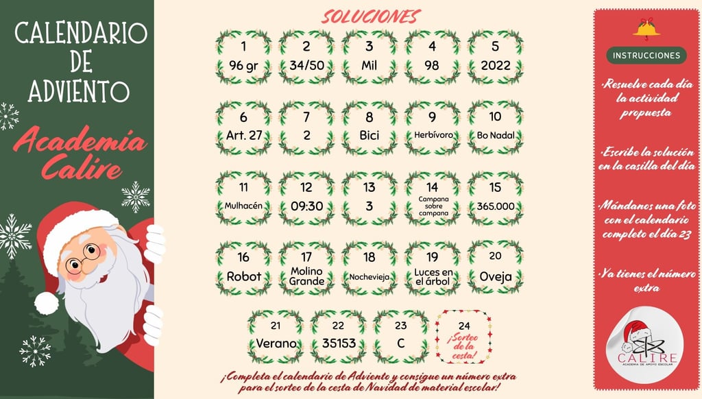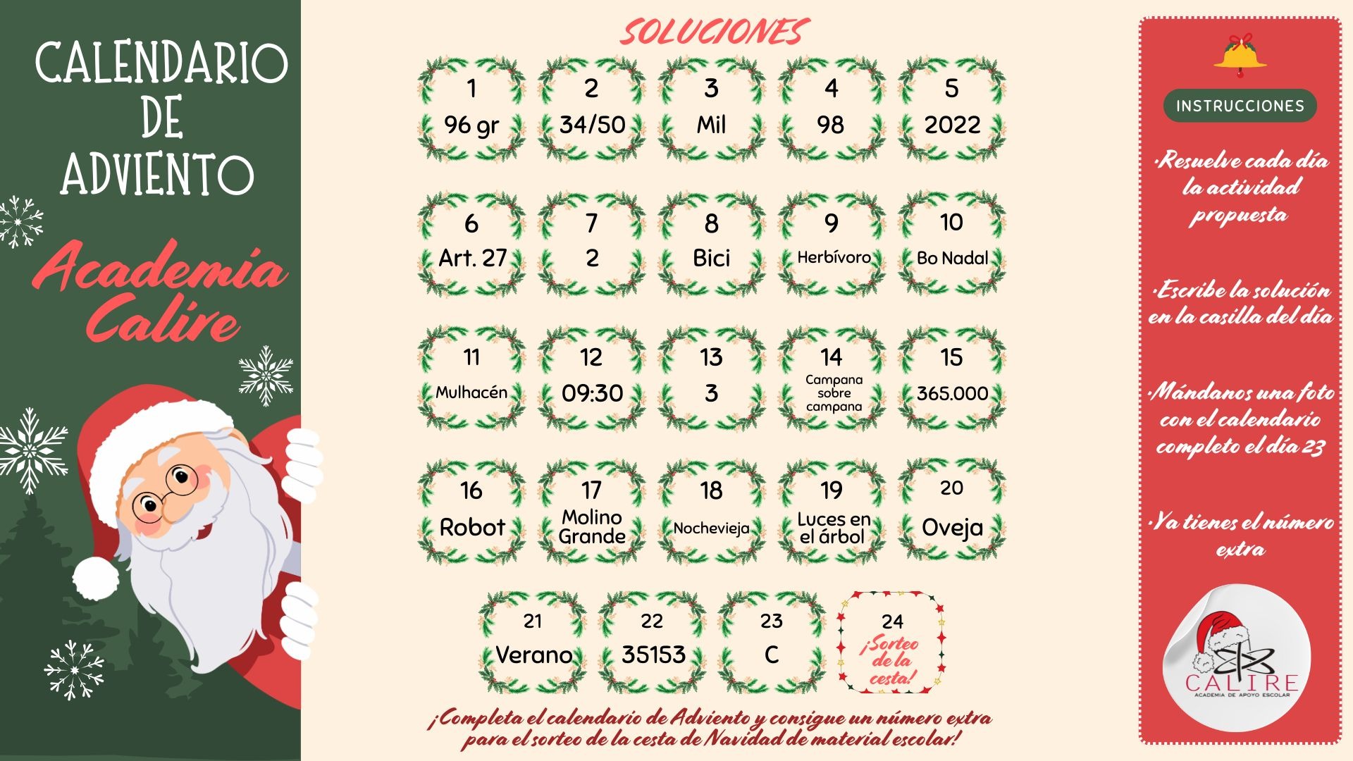 CALENDARIO DE ADVIENTO ACADEMIA CALIRE 2025